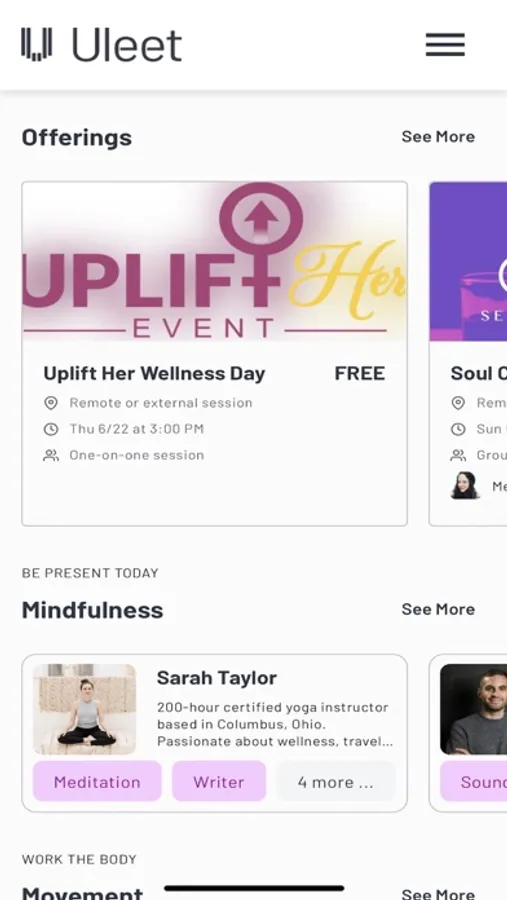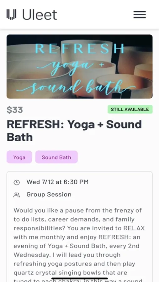 Discover the future of your wellbeing with Uleet. Uleet is your all-in-one wellness marketplace, offering an intuitive platform to explore, connect, and engage with holistic wellness providers. From yoga and fitness training to nutrition consultations and massage therapy, our carefully curated selection caters to all your wellbeing needs.