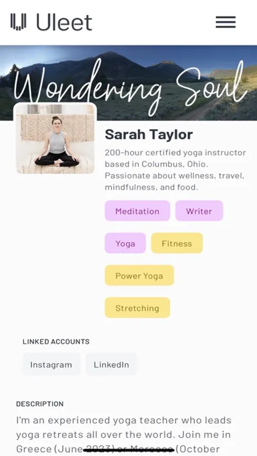 But Uleet is much more than a directory of wellness services. We're a growing community of enthusiasts, where you can share experiences, learn from others, and make connections that inspire and sustain your personal wellbeing journey. Become a part of a vibrant community on the journey towards your best self.