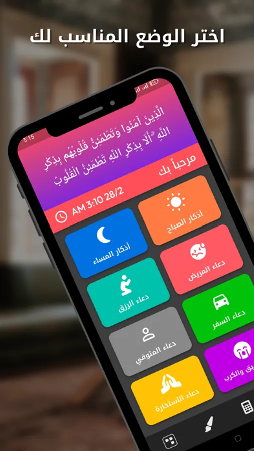 تطبيق أذكار اليوم هو تطبيق ديني يحتوي على العديد من الأذكار الصباحية والمسائية كما يحتوي على العديد من الأدعية لكافة المناسبات الحياتية. يحتوي التطبيق أيضاً على سبحة إلكترونية تمكنك من التسبيح ومتابعة عدد التسبيحات.