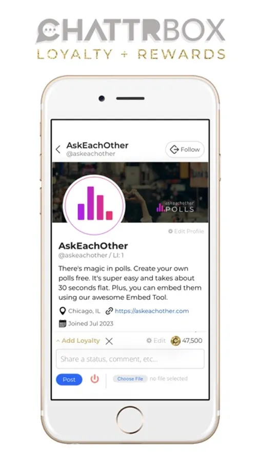 ChattrBox is a first-of-its-kind text-based content-sharing platform where Creators, Small to Medium Brands and Businesses can share Loyalty-enabled content and real-time updates with Fans, Followers, Customer, Members or any audience. In addition, Followers can earn digital Loyalty Coins (sort of like rewards points) just for interacting with Loyalty-enabled content.