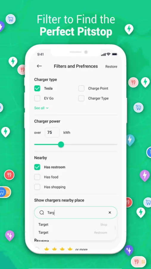 Discover the ultimate EV charging station app that takes care of all your needs. EV PITSTOP, your go-to solution for finding the perfect charging spot while enjoying nearby food and shopping. You'll have access to information for all charger types and brands in one convenient app. Download now and never waste time searching for a EV charger point again!