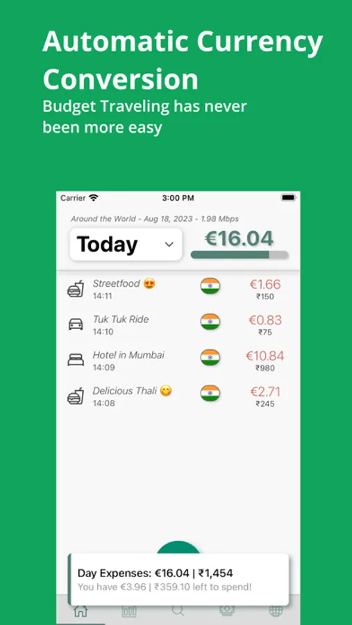With Budget for Nomads, you can enjoy every minute of your trip without wasting time calculating costs. Budget for Nomads makes low budget travel fun!