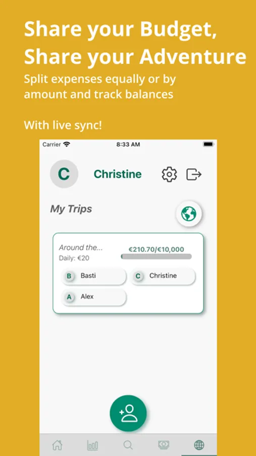 Create a new trip to get ready for your next adventure! Invite friends or family to enter expenses on a trip together. No matter which fellow traveller has to repay whom and how much, you can record everything. No more fiddly maths and even confusing group payments are simplified.