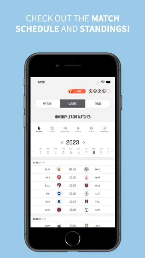 Compete with others through football match results! Predict matches and score points. Compete against your team or everyone! FMW offers a selection of teams from the six major European football leagues. ( England Premier League, Seria A, Bundesliga, Laliga, Ligue 1, Eredivisie)