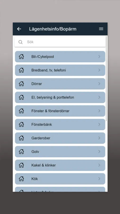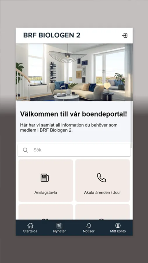 I appen kan du ta del av er digitala anslagstavla, göra felanmälan, ta del av bopärmen och mycket mer. Här finns även en egen del för styrelsen med aktuella dokument med mera.