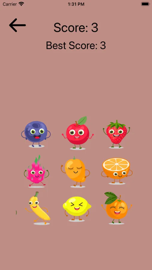 Jeu de concentration donc vous devez enregistrer dans votre esprit quel fruit vous voyez et l'ordre de le voir et après cela vous allez toucher les fruits afin d'obtenir de plus en plus de points et d'augmenter le score et le jeu devient de plus en plus difficile avec le temps et vous avez 3 modes :
