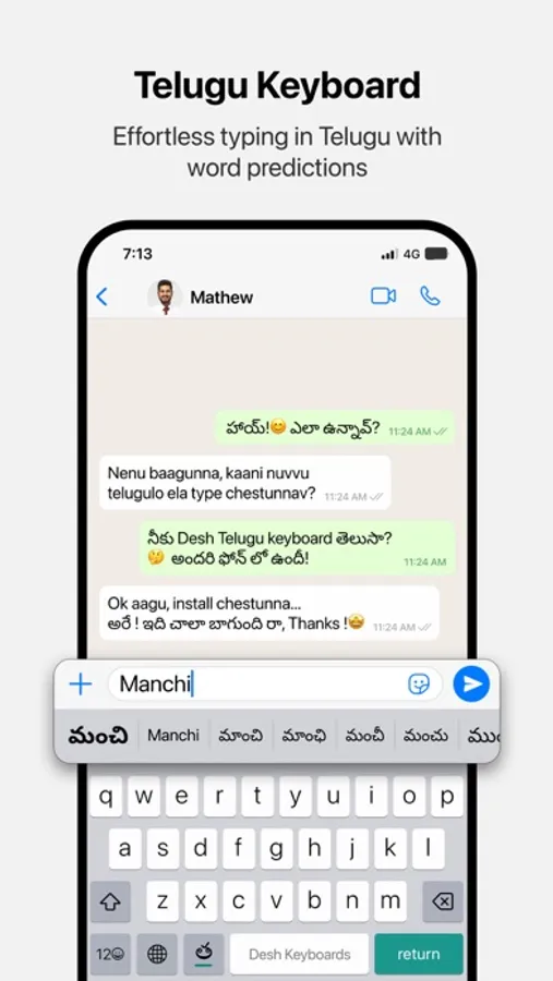 Desh Telugu Keyboard is a keyboard extension that makes Telugu typing super easy: