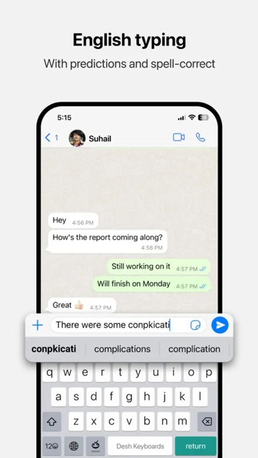 • Word predictions and spell-correct is available in English also