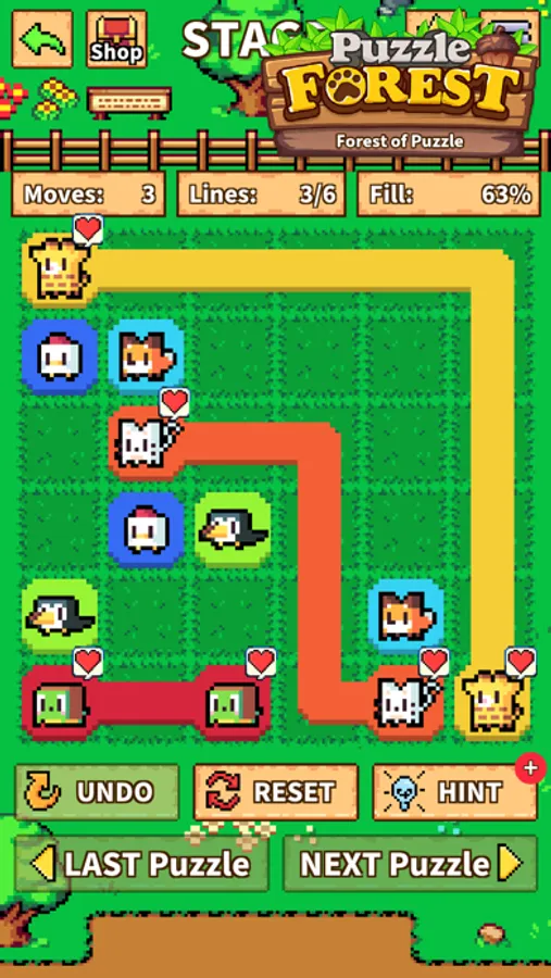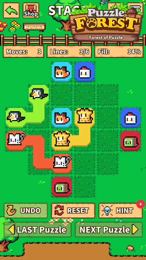• Match all the colored lines to solve the puzzle!