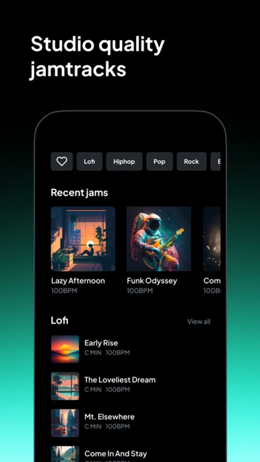 Introducing Jamtracks, a powerful and user-friendly app designed to help musicians of all levels improve their skills and creativity. Whether you're a guitarist, pianist, bassist, drummer, Jamtracks offers a vast library of professionally recorded backing tracks in various genres, keys, and BPMs, giving you the perfect environment to practice and improvise.