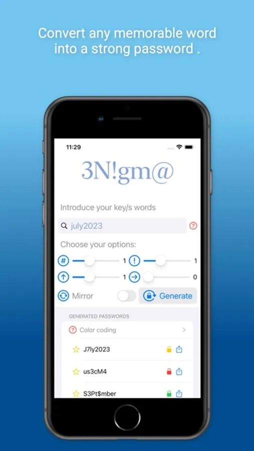 With 3N!gm@, you'll never have to worry about forgetting your passwords or compromising your online security. Our app makes it simple to create unique, powerful passwords for all your apps, websites, and online services.