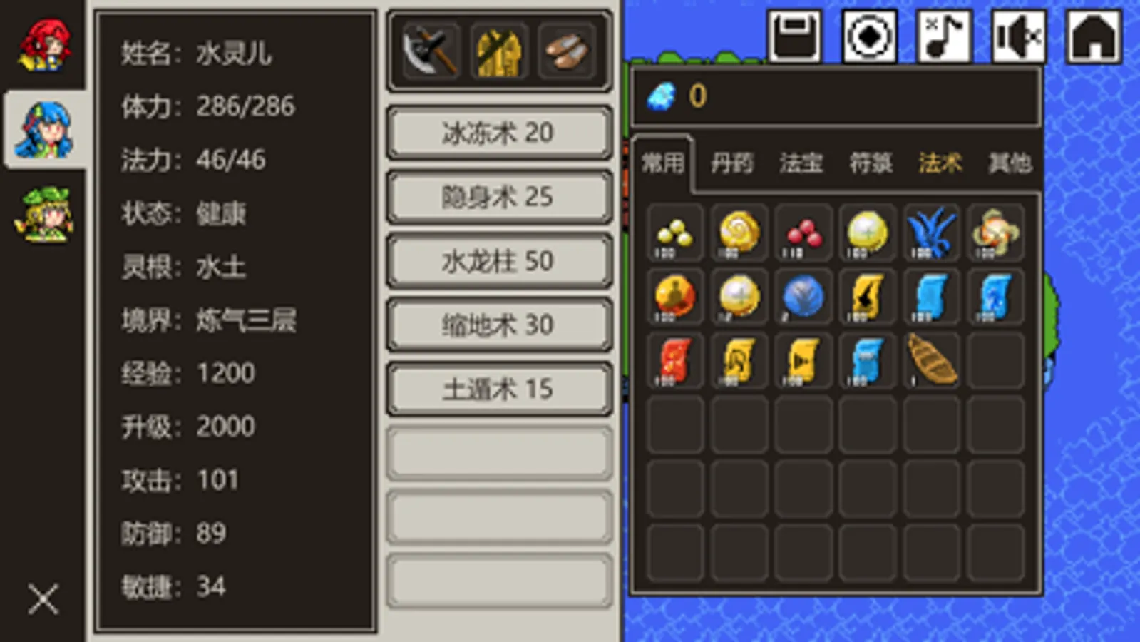 这是一款像素画风的角色扮演修仙游戏,在游戏中你将扮演主角龙傲天,在修真路上斩妖除魔,成就仙道。一路上你会遇到各式怪物,各种人物,还可以学习法术,添加伙伴等等