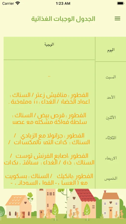 الجدول الغذائي للطالب