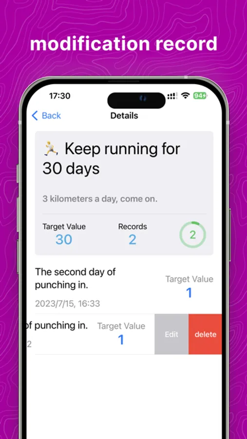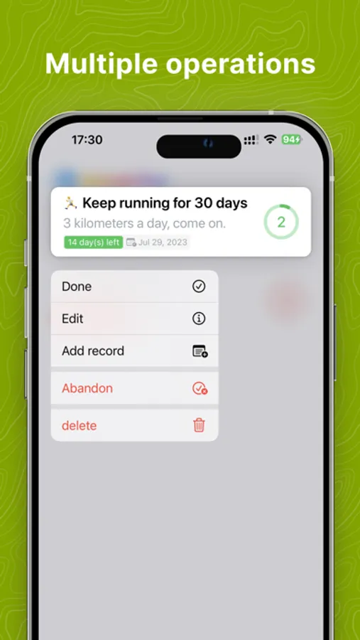 3. Long press the plan to complete, edit, new record, abandon, delete, sort