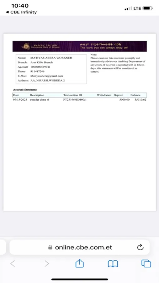 For further information, please e-mail to us :- epaymentsupport@cbe.com.et