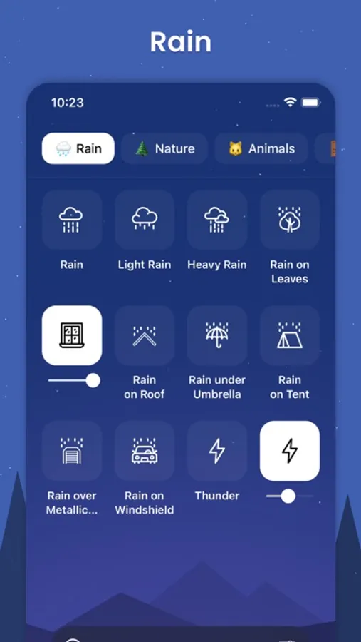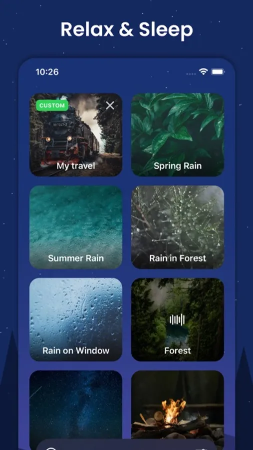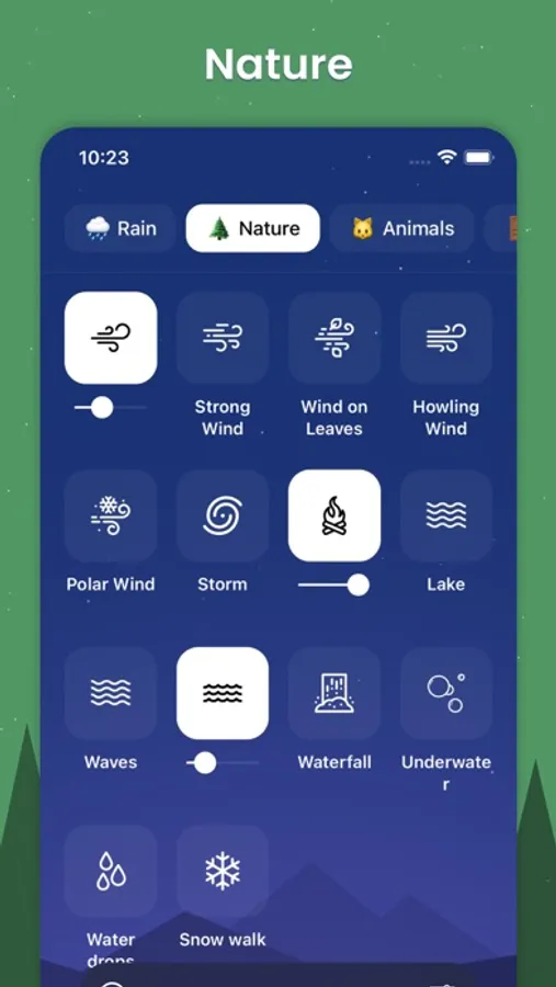 In our application you will find more than 50 sounds for sleep and relaxation from different categories.