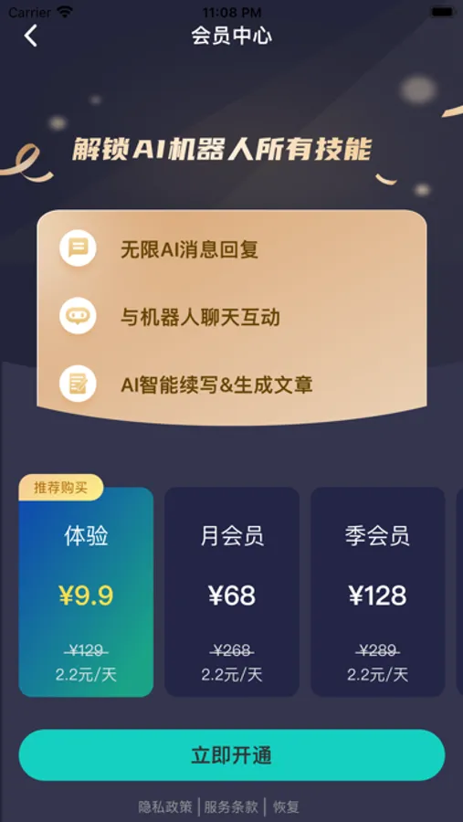 2.订阅周期:一个月;订阅周期内,用户可享受VIP会员功能