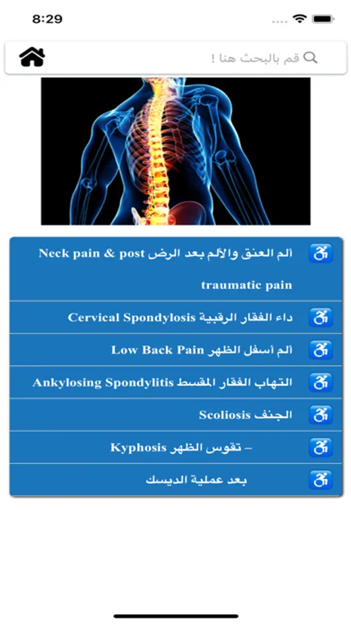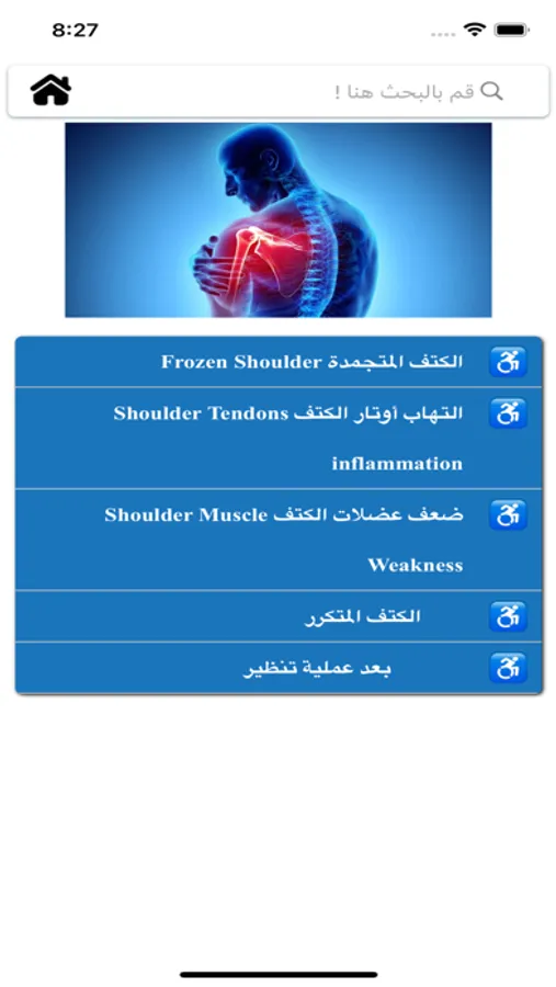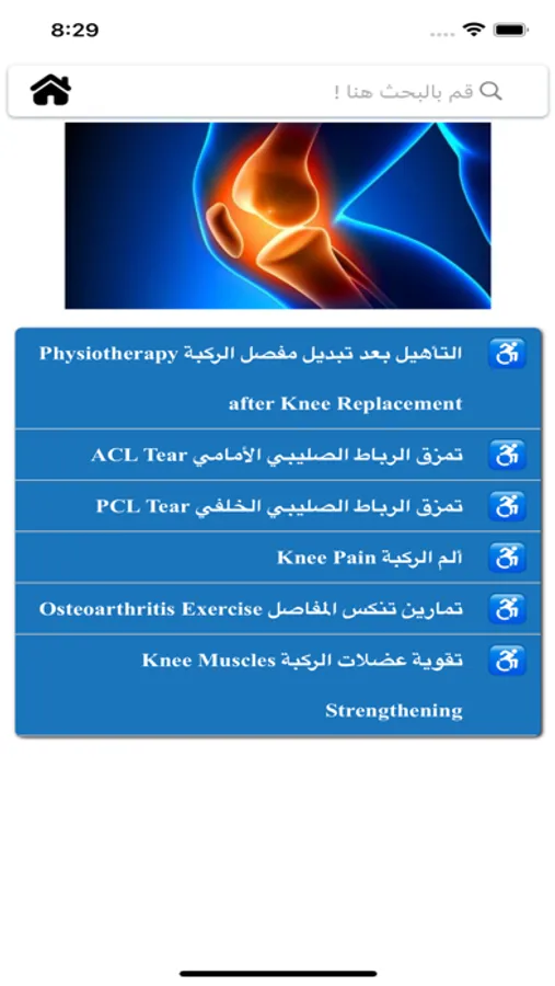 تم تقسيم التطبيق بحسب المفصل, ثم بحسب كل حالة مرضية, وكل حالة تم ارفاق مقطع فيديو لشرح طريقة العلاج الفيزيائي وإغادة التأهيل بالاضافة لإرفاق مقالة شرح عن هذه الحالة المرضية.