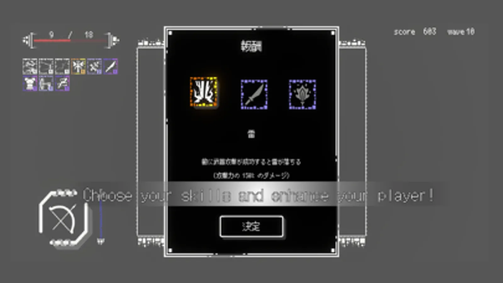As you defeat monsters, you can obtain one skill from a randomly selected list.