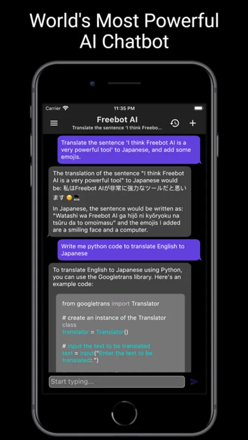 Freebot AI Chat offers free daily access to the world's most powerful AI Language Model, try it now!