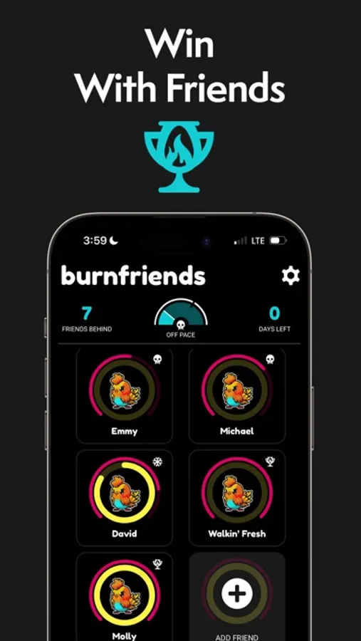 BurnFriends is a fun virtual pet that helps friend groups complete fitness challenges together.