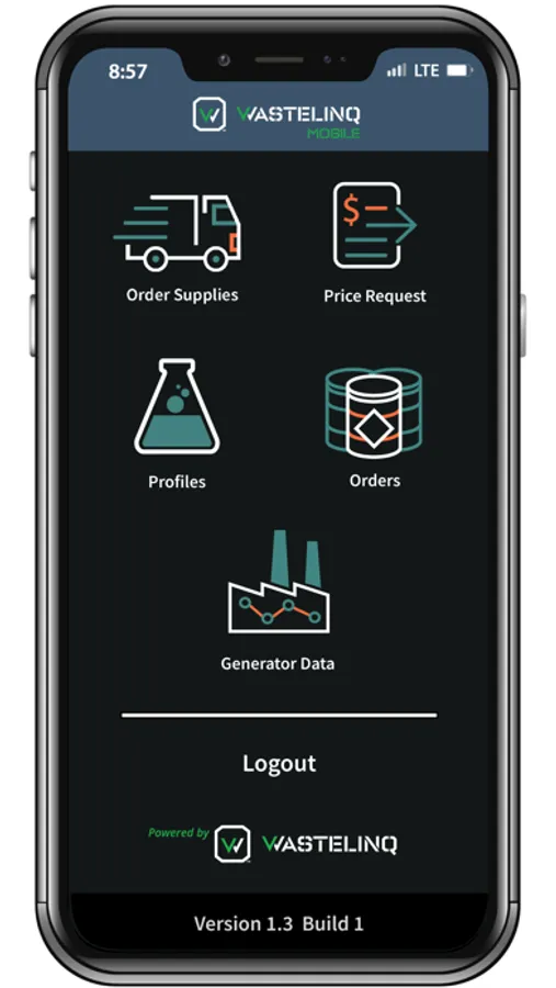 The WASTELINQ mobile app provides users with the ability to manage Generator Data, Orders, Profiles, Price Requests, and supplies from their smartphones.