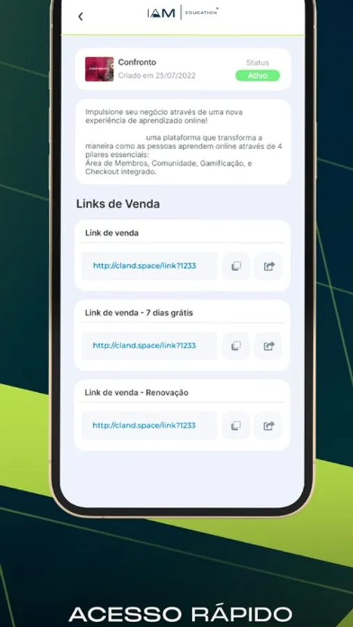 Você pode ser um afiliado tanto do Instituto Academy Mind quanto dos cursos e produtos digitais da plataforma IAM Education. Dentro do IAM Education Partner você confere todos os produtos disponíveis para afiliação, comissões, formatos, além de ferramentas e estratégias que vão auxiliar nos seus negócios.
