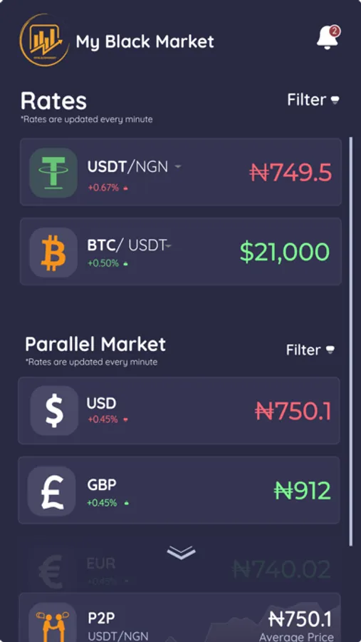 The perfect tool for cryptocurrency enthusiasts! With our app, you can easily check USDT, BTC and NGN prices.