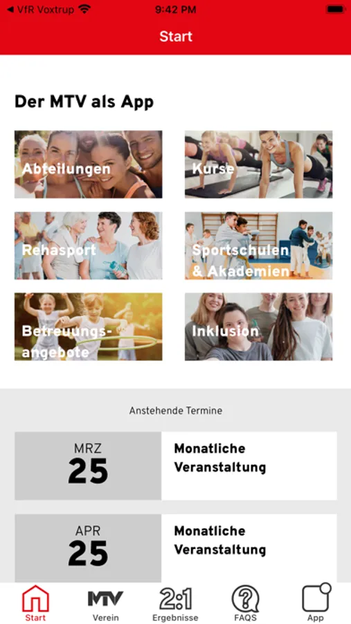 Der MTV Ludwigsburg gehört zu den größten Sportvereinen in Baden-Württemberg. Unsere Vereinsapp richtet sich an alle Mitglieder, Mitarbeiter, Trainer, Eltern, Fans und Funktionäre. Per Push-Mitteilung informieren wir als Hauptverein, aber auch die Abteilungen und Kursleiter tagesaktuell über interessante News, anstehende Termine und aktuelle Ergebnisse. Darüber hinaus gibt die App einen schnellen Überblick über unser komplettes Sportangebot, alle Trainingszeiten, die Trainingsorte und die wichtigsten Ansprechpartner. Zahlreiche weitere Funktionen machen die App zu einem ganz zentralen Kommunikationskanal der Zukunft. Also: Am besten gleich installieren und nichts mehr verpassen!