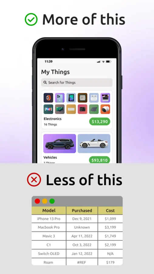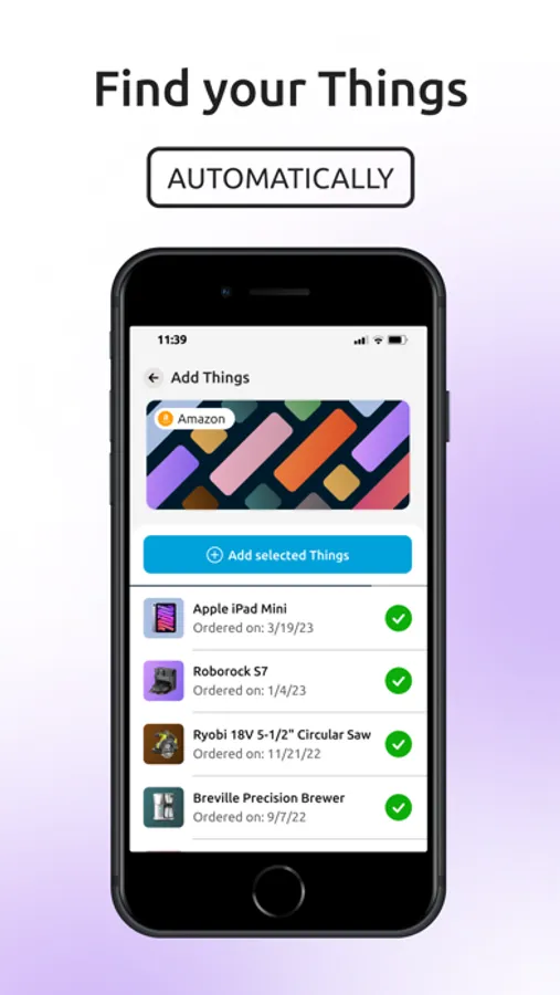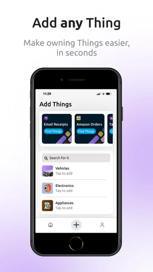 -Add your Things in seconds. Automatically add Things from purchase receipts or enter them manually without the hassle of extensive fields.
