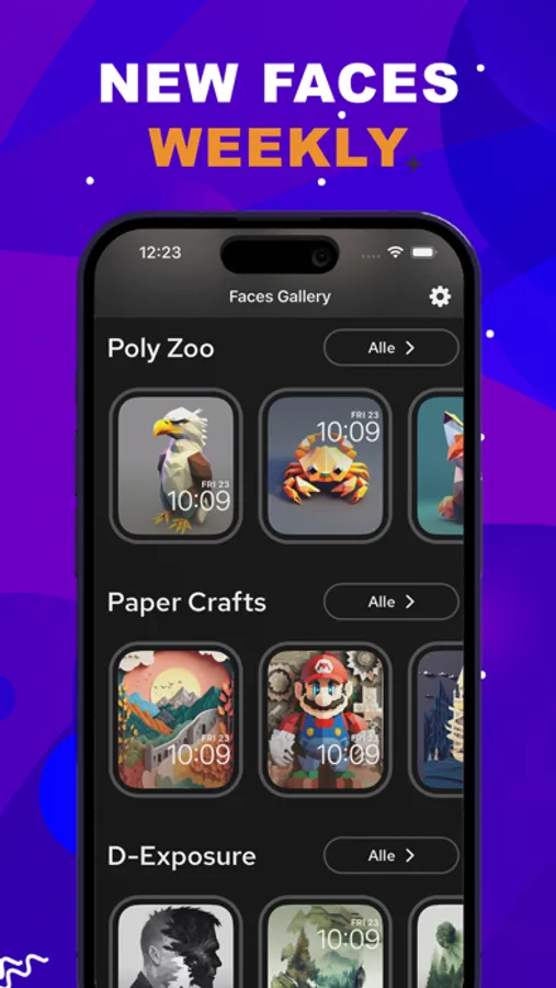 - Specially curated watch face gallery, categorized for various occasions
