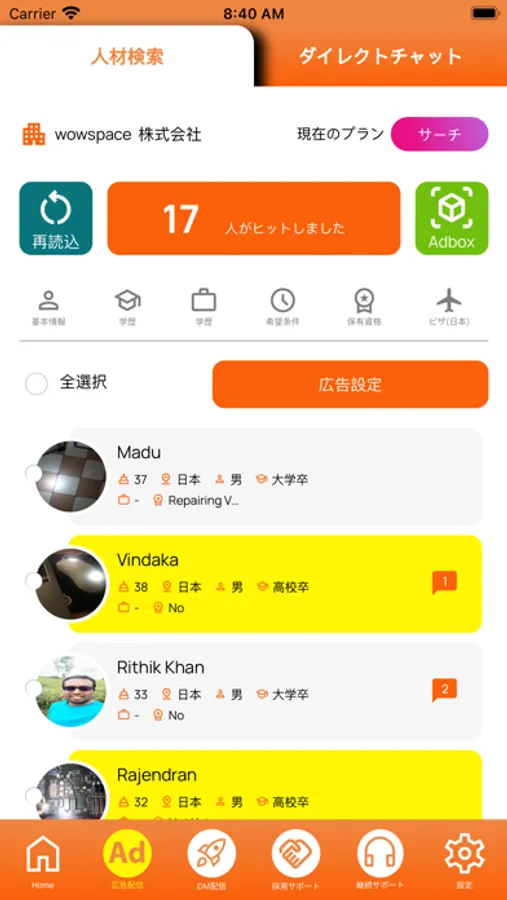 人材検索・マッチングだけでなく、人材を受入れる為の各種手続きから、入国後の人材サポート体制構築までが、ワンストップで完結します。