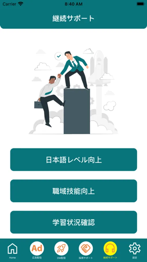 更に、人材の学習状況の把握から日頃の悩み事の相談を受け付ける機能など、入国後の人材へのケアに役立つ継続サポート機能もあわせて提供します。
