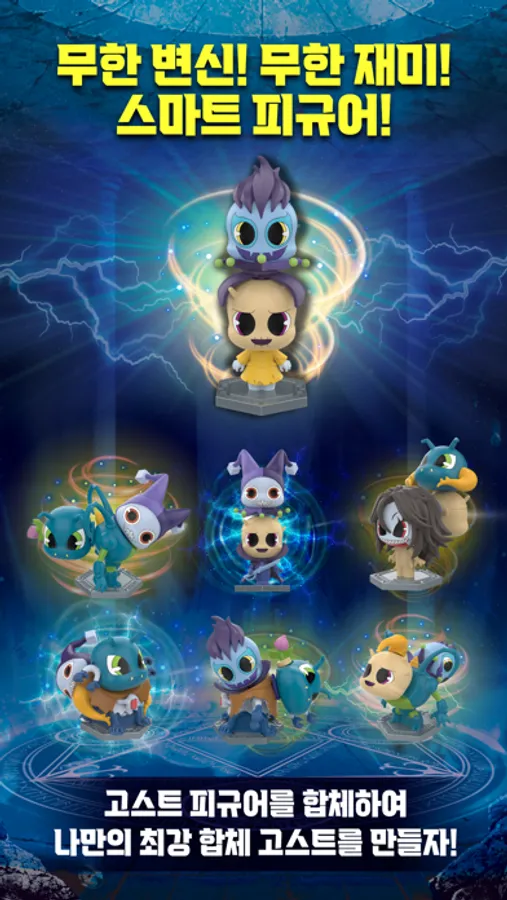 피규어X는 실물 피규어 ‘변신 합체 스마트 피규어’와 연동해서 고스트 피규어를 획득하고 다양한 활동을 즐기는 게임입니다. 나만의 고스트 컬렉션을 만들어보아요!