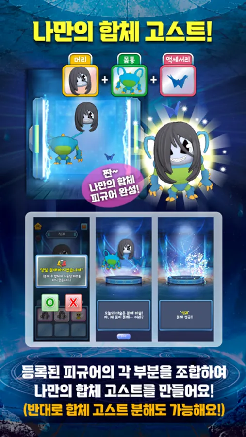 ▷ 나만의 고스트 피규어 제작: 고스트 피규어를 등록하면서 얻은 파츠로 합체 고스트 피규어를 만들 수 있어요. 머리, 몸, 액세서리 파츠와 이름을 선택해서 나만의 독특한 고스트 피규어를 만들어 보는 것은 어떠나요?