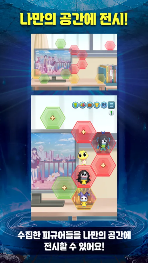 ▷ 고스트 피규어 배치: 획득한 고스트 피규어는 로비 화면의 책상 위에 전시할 수 있어요. 다양한 고스트 피규어를 획득하고 가장 멋있는 배치 방법을 찾아보아요.