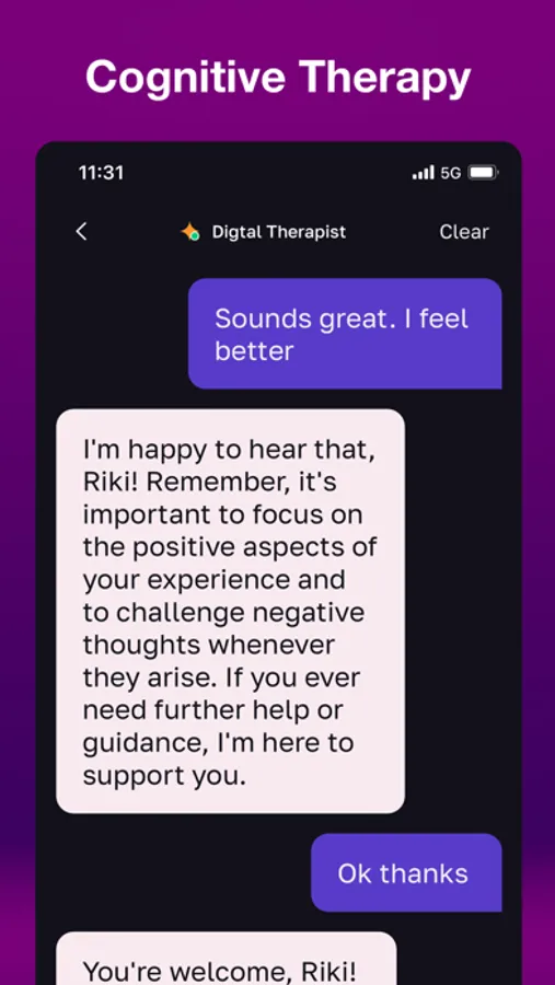 Personalized Cognitive Therapy: Engage in conversations with our chatbot therapist, trained in cognitive-behavioral therapy techniques, to develop strategies for reframing negative thinking patterns and embracing a more positive outlook.