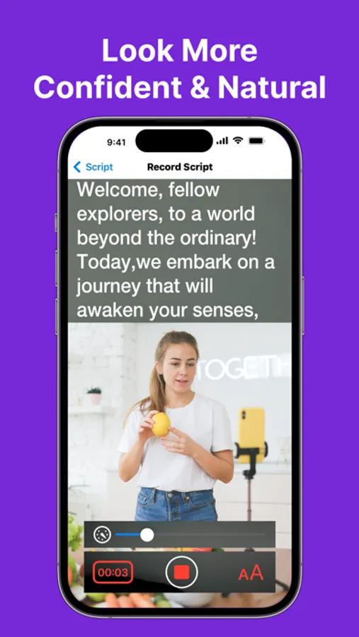 • Record videos with eye contact as on a real mirror and read the Teleprompter like captions for videos