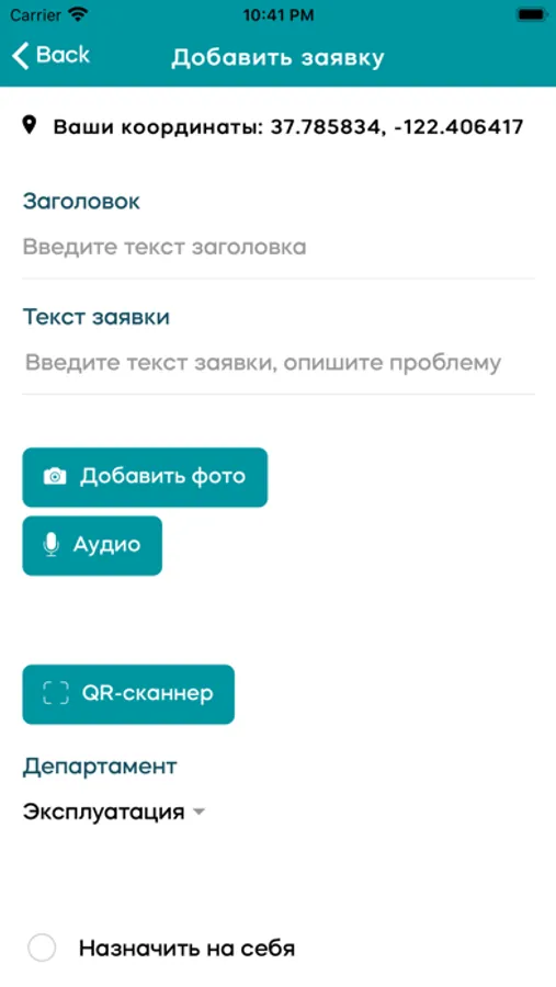 Приложение позволяет получать заявки на работу, выполнять задания и закрывать заявки из Kaizen