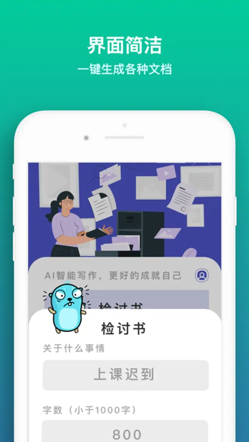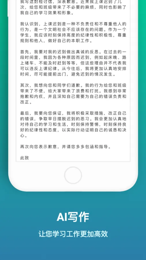 各种文档范文供您参考,AI加持,一键生成各种检讨书、保证书、道歉范文、表白情书等等。