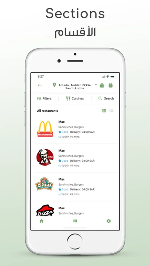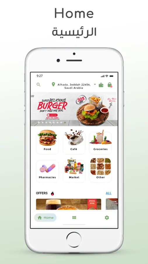 Nashmi app is for ordering from local restaurants , shop for groceries online , order food and other products and get it delivered to your place , feature of paying cash or online.