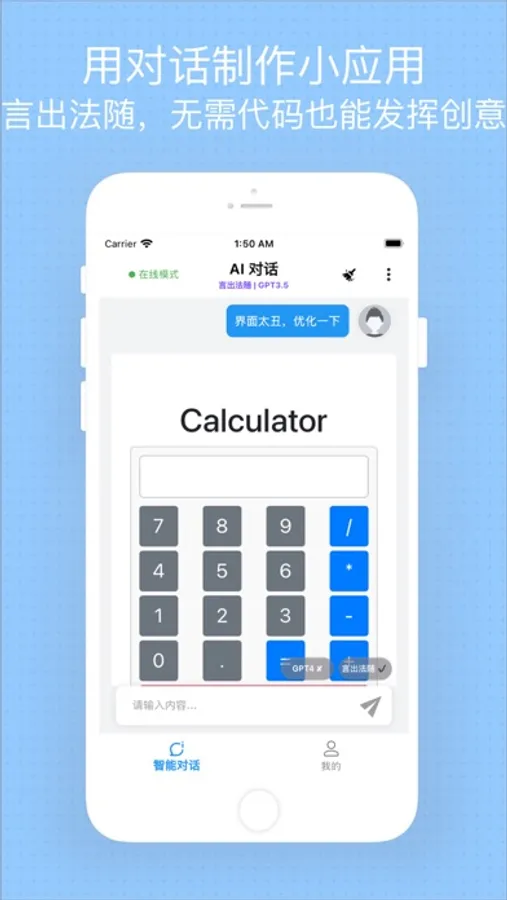-全新言出法随模式,使用简单对话即可生成应用分享好友