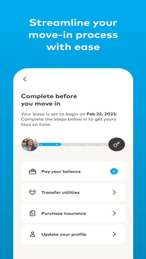 Moving in can be stressful, but with our app, you can easily stay on top of all requirements prior to move-in to ensure a smooth and hassle-free move-in process.