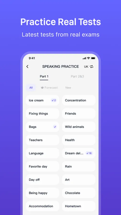 2. Speaking mock: AI-powered automated scoring, unlimited mock with various accents.
