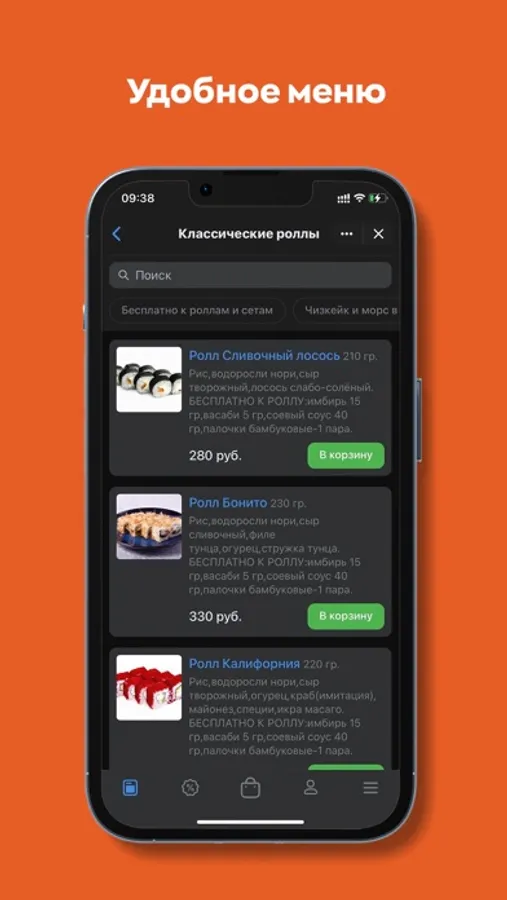 Всегда под рукой, в приложении — история заказов, наши акции. Запомним ваши адреса доставки, повторное оформление будет еще проще и быстрее!