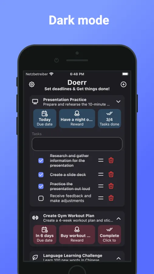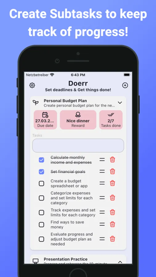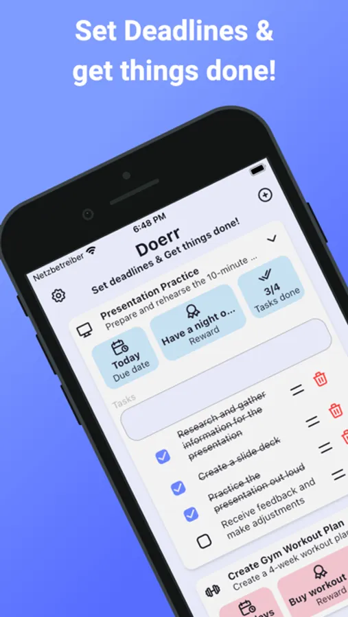 Introducing Doerr - the app that helps you stay on top of your deadlines and achieve your goals with a unique twist!