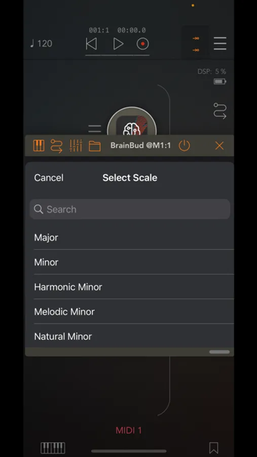BrainBud controls the keys and scales of the Bud apps all at once. Connect BrainBud’s MIDI out to MIDI inputs of: