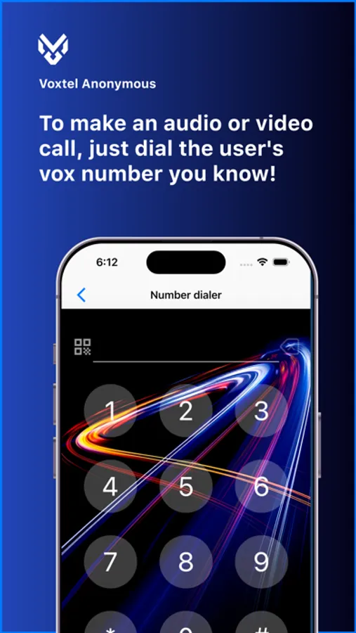VIRTUAL VOXTEL ROOMS. To contact any VOXTEL user, it is enough to only know his virtual number - a public identifier on the ©Voxtel network. When logging into VOXTEL for the first time, the user is assigned a new virtual number consisting of a set of 9 random digits that are not associated with any regional, personal, fingerprint or other personal data of the user, allowing the virtual VOXTEL number to be associated with a real person.
