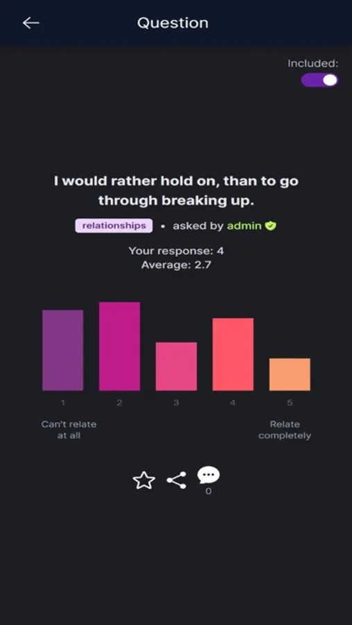 - View the Results. Once you've answered a question, you can view the results of the page to: see how other users have responded, find out who created the question, access additional context/information provided by the creator, comment your thoughts, and share the question directly with your friends