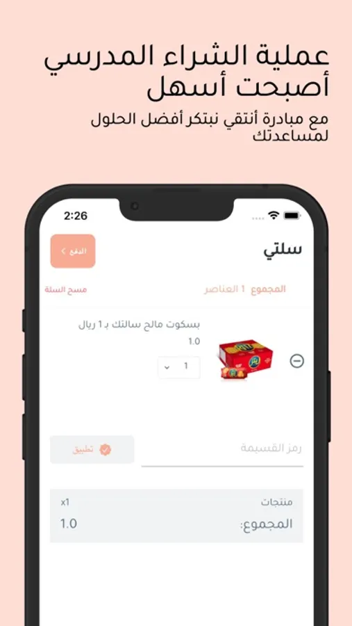 يسمح تطبيق أنتقي للطلاب بإضافة المنتجات الى العربة والذهاب لاستلامها مباشرة من المقصف المدرسي كما يسمح للمدارس بإدارة العمليات الشرائية وترتيبها.